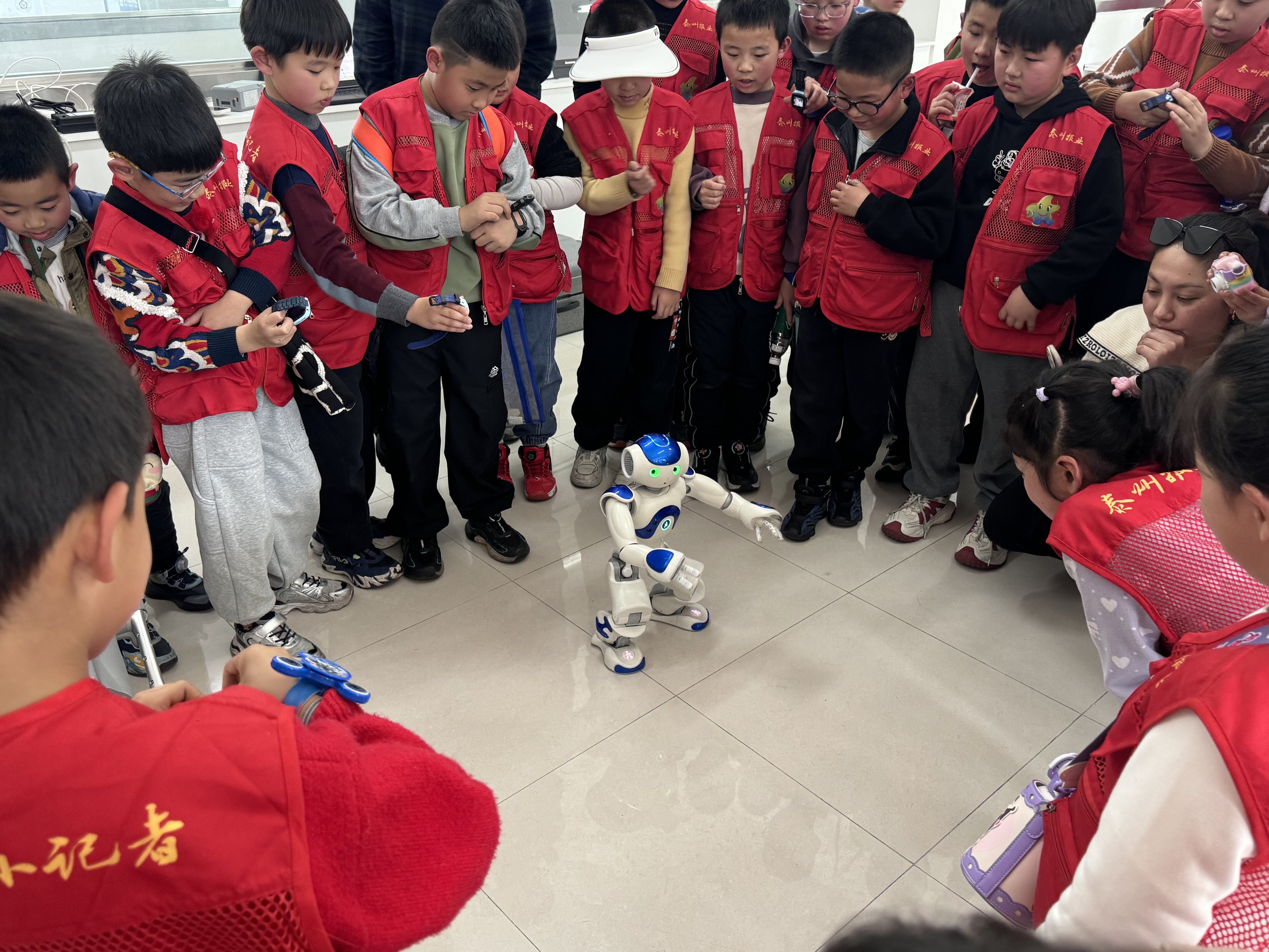 活动现场,泰职院的学生志愿者为小记者们详细讲解了机器人的内部结构和工作原理,让孩子们对工业机器人技术有了更直观的了解。“这款仿人形机器人具备高度编程自由度,能配合音乐编排上百种舞蹈动作。”据基地负责人介绍,作为实践教学平台,学生可通过机器人开展动作编程竞赛等实训项目,实现理论与实践深度融合。